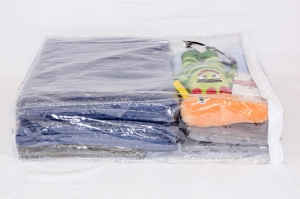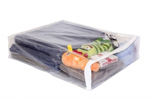 Vinylpac vinyl storage bag is perfect for sweaters, blankets, bedding and more! Features a self-correcting zipper. Clear vinyl plastic panels allow for easy visibility of the bag’s contents; no need to unzip! Heavy duty material resists tears, therefore keeping contents safe from exposure to dust, dirt, and pests! Perfect for storage of delicate items. Size 15” x 18” x 4”. All bags are BPA free and compliant with California Prop 65. (Contents of the bag are not included).